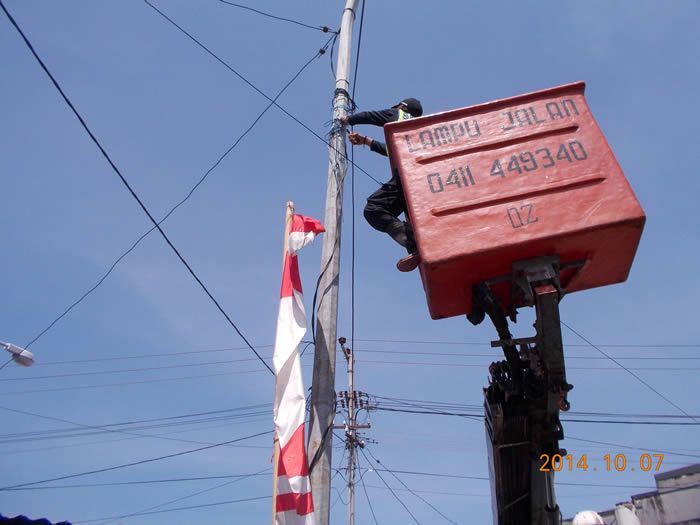 Makassar-PJU,- Tim Normalisasi Panel dan Jaringan PJU pada hari ini telah menormalkan sebanyak 2 titik lampu jalan dan telah membenahi sebanyak 3 ruas jaringan PJU ilegal. Lokasi penormalan adalah Rayon Selatan : Jl. Komp. Manggasa Permai, Jl. Pettarani. Rayon Barat : Jl. Rajawali. dan Rayon Timur : Jl. Yayasan Komp. Gubernur, Jl. Paccerakkang, Jl. Sakinah, Jl. Perintis Kemerdekaan.